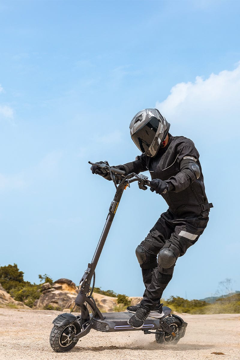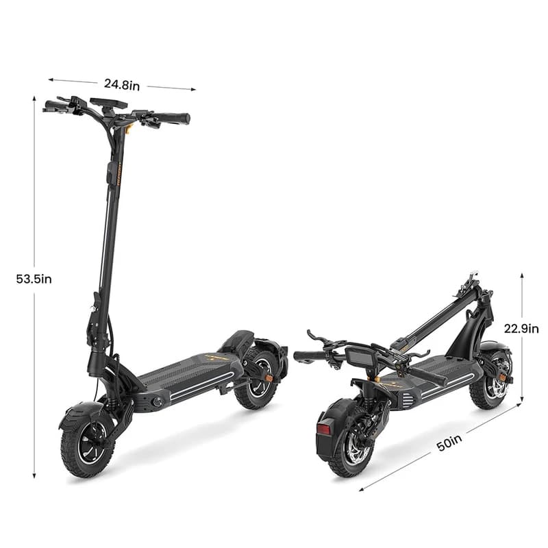 Hlavní předností této koloběžky jsou dva 1000W bezkartáčové motory, které poskytují ohromující výkon a umožňují dosáhnout maximální rychlosti 41 mph. Tato dvojitá síla vám umožní zvládnout i nejstrmější kopce s 46% stoupáním, což dělá z této koloběžky ideálního společníka pro různé terény.