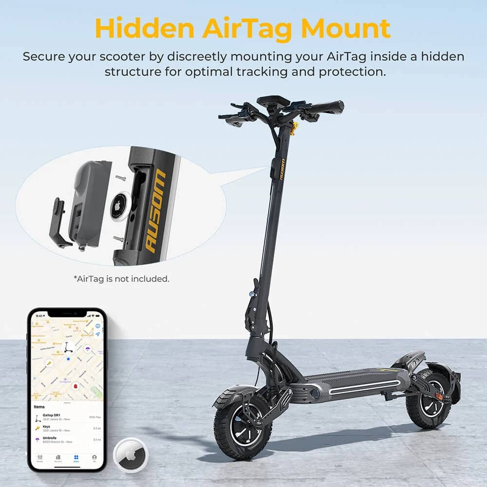 Pro ty, kteří se rádi pohybují v noci, je Ausom Gallop SR1 vybavena stylovým ambientním osvětlením, které nejen zvyšuje vaši viditelnost, ale také dodává vaší jízdě na koloběžce poutavý vzhled. Dále se můžete spolehnout na skryté uchycení AirTag pro optimální sledování a ochranu vašeho dopravního prostředku.