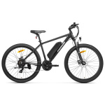 Motor: zadní nábojový, 250 W, 36 V, až 50 Nm; Pedelec limit 25 km/h. Snímač: 12-magnetový kadence. PAS: 5 úrovní, + Walk mode 6 km/h. Baterie: Li-ion 36 V / 13 Ah (468 Wh), vyjímatelná, uzamykatelná, nabíjení cca 6,5 h. Pohon: Shimano 21 rychlostí (3×7). Brzdy: mechanické kotoučové + e-brake. Rám: hliníkový hardtail; vidlice: 80 mm s lockoutem. Kola: 27.5″ nebo 29″, pláště CST 2.1″. Displej: 2,6″ LCD. IPX4 voděodolnost. Rozměry: 1780 × 730 × 1040 mm; řídítka 720 mm. Hmotnost: cca 27,5 kg (M, 27.5″) / cca 29,8 kg (L, 29″). Max. zatížení: 120 kg. Doporučená výška: 160–195 cm (27.5″) / 165–200 cm (29″).