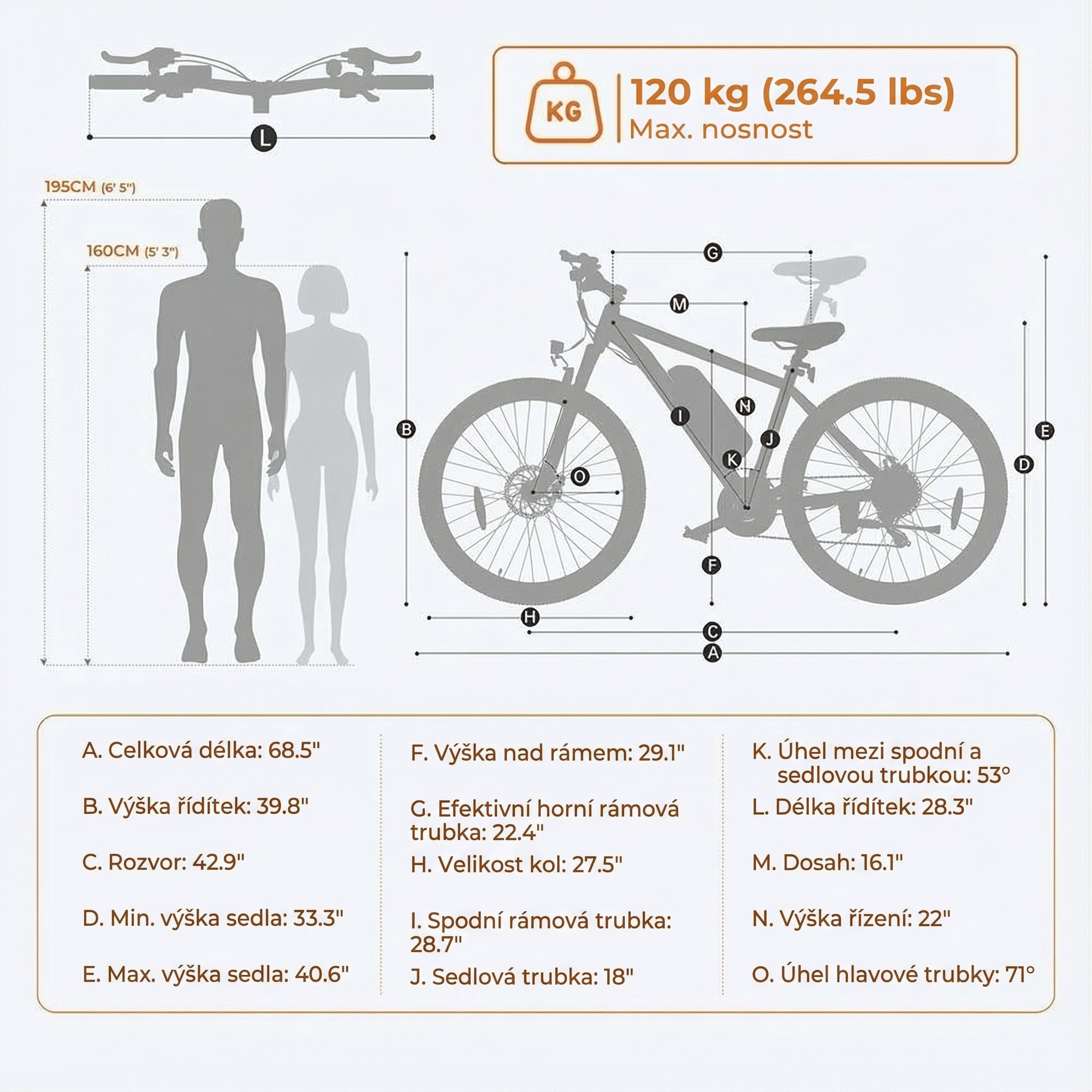 Hmotnost verze 27.5": cca 27,5 kg (včetně baterie)