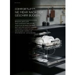 Technologie ComfortLift jemně zvedne spodní koš přibližně do výšky horního, takže nakládání hrnců a talířů je výrazně pohodlnější a šetrnější k zádům. Ovládací panel s QuickSelect (dotykovým posuvníkem) umožňuje nastavit délku cyklu jediným tahem a Ecometer vás navede k volbě nejúspornějšího programu pro nižší spotřebu energie a vody.