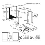 Pro přesnou a flexibilní vestavbu slouží posuvné panty (sliding door) a osvědčené montážní míry 818 × 596 × 550 mm, s výřezem 820–900 × 600 × 550 mm. Praktickou výhodou je připojení na teplou vodu do 60 °C, hadice 1,8 m (přívod/odpad) a elektrické parametry 1950 W, 220–240 V, 50 Hz, jištění 10 A – ideální pro standardní kuchyňské skříňky šířky 60 cm.