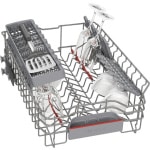 Myčka nádobí Bosch Serie 4 SPS4HKW49E šetří místo díky šířce 45 cm, přitom nabízí kapacitu 10 sad nádobí pro každodenní použití. Model je navržen pro tichý provoz 44 dB (Silence Plus) a stabilní účinnost s energetickým štítkem třídy E, takže se snadno hodí do kompaktních kuchyní bez kompromisů na výkonu.