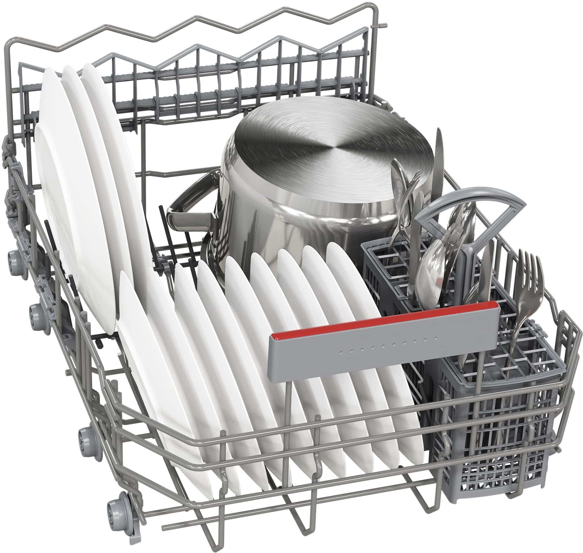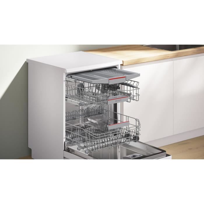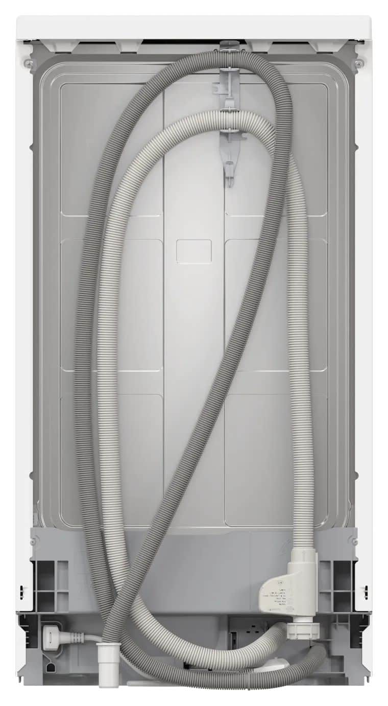 Úzká volně stojící konstrukce s rozměry přibližně 84,5 × 45,0 × 60,0 cm se vejde i tam, kde je prostor omezený, a přitom zvládne náplň pro běžnou domácnost. Vnitřní uspořádání tvoří flexibilní systém VarioFlex košů a nastavitelný horní koš RackMatic, takže snadno přizpůsobíte místo pro talíře, sklenice i hrnce. Bílé provedení působí čistě a moderně.